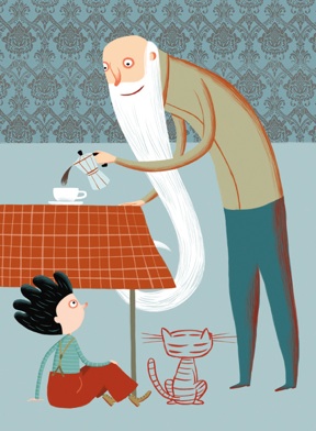 Del suo modo di disegnare mi è piaciuto particolarmente il colore pieno e il modo in cui fa ‘vivere’ i personaggi, con quegli occhioni spalancati sul mondo. Gli animali poi sembra raccontino storie tutte loro: la Piccola Meraviglia si è innamorata subito dell’elefante blu di Tony e ha chiesto (e ottenuto) che mamma ne disegnasse uno uguale (va be’, lasciamo perdere!) per metterlo nella sua collezione di animali! Solo che lei ha voluto colorarlo di verde… 🙂