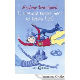 * Il pianeta senza baci (e senza bici) * di Andrea Bouchard (Ed. Salani, pp. 118, euro 13,00). Mattia ha undici anni ed è sicurissimo che gli extraterrestri esistano. Perciò è al settimo cielo quando dopo un bizzarro incidente approda sul pianeta Blu, un mondo supertecnologico, dove anche i bambini possono guidare la moto e volare con l’elicasco. Ma, come dice il proverbio, non è tutto oro quello che luccica e Mattia impara ben presto le regole del pianeta: gli animali sono banditi, gli stranieri guardati con sospetto ed è vietato mangiare, correre, ridere e persino dare i baci… Questo libro è scritto per i piccoli terrestri, ma si rivolge anche agli adulti che, abbagliati dal mito del progresso, perdono di vista il diritto dei bambini a essere bambini e dei grandi a essere liberi, colorati ed emozionati. Per acquistare