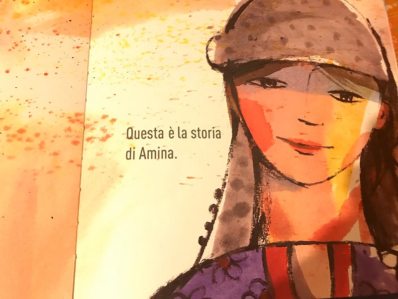 “Questa è la storia di Amina. E’ una bambina che vive in una terra lontana, occhi neri, piedi scalzi, vestito a fiori.”