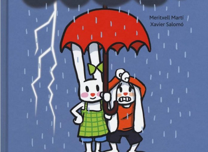 Il coniglietto Toni ha paura dei temporali e per lo spavento si nasconde sotto le coperte.