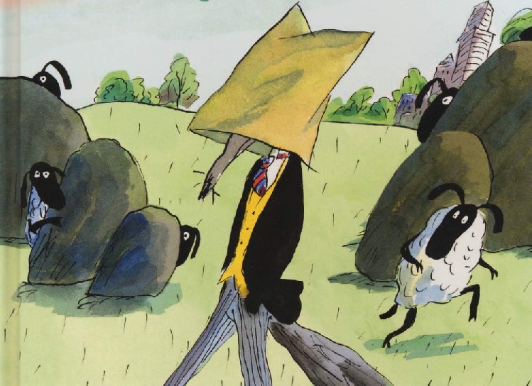 Infatti Lupo ha escogitato uno stratagemma semplice ma efficace: si mette una busta in testa per non farsi riconoscere dal gregge ed ogni volta dice di chiamarsi in modo diverso.