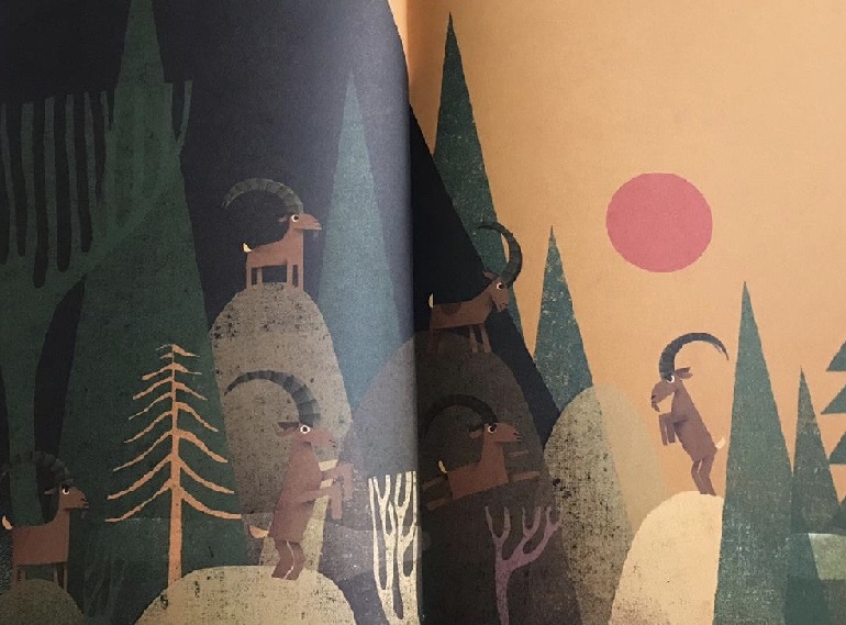 Ai piedi della montagna vivevano gli stambecchi, che passavano il tempo a combattere tra loro.”