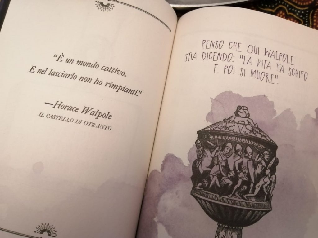 Ritrovarla in questo libro, che racconta la sua biblioteca e i libri che l’hanno ispirata, è molto ispirante. Oltre a essere un riepilogo piuttosto articolato del nostro tema del mese, sul romanzo gotico, è una perfetta lista di classici a tema sull’argomento, arricchita degli appunti e delle battute tetre e spiazzanti della bambina più cupa, lugubre, angosciante e simpatica che abbia mai conosciuto!