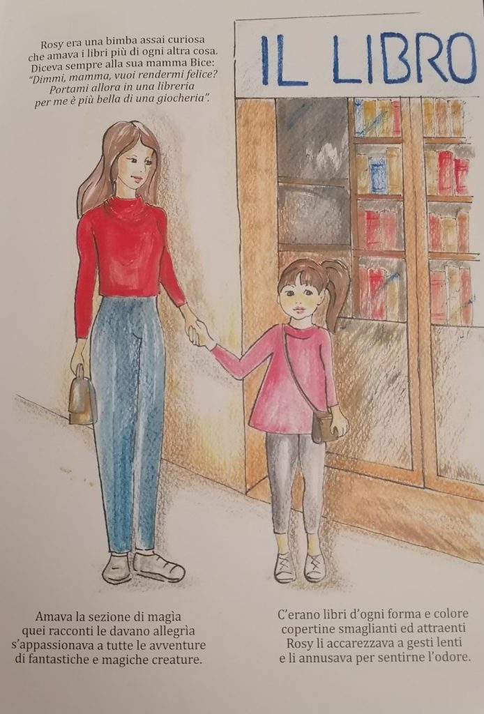 Rosy è una bambina che ama tantissimo i libri e la lettura e spesso va in libreria con la sua mamma Bice.