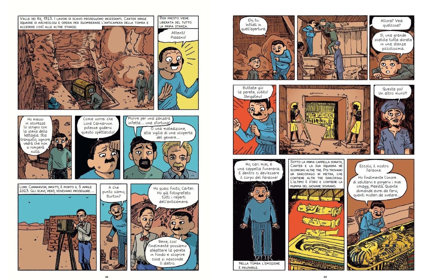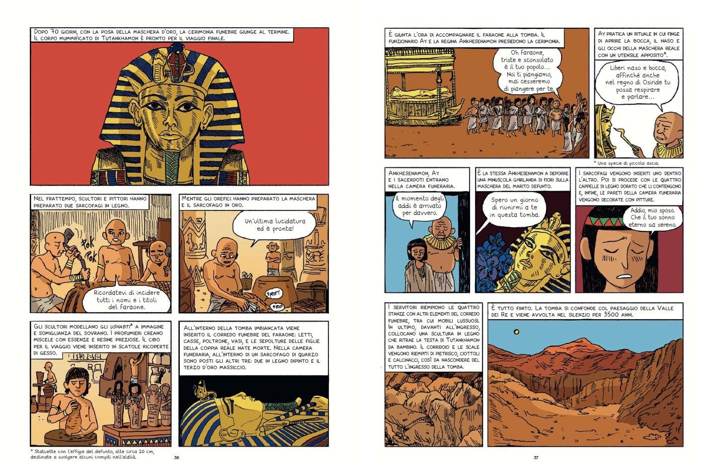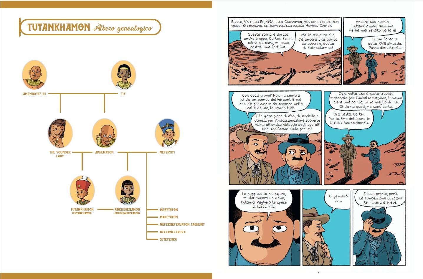 In una narrazione che alterna la scoperta della tomba e la vita di Tutankhamon questo fumetto ci regala una lettura bellissima e una ricostruzione storica accurata e chiara.