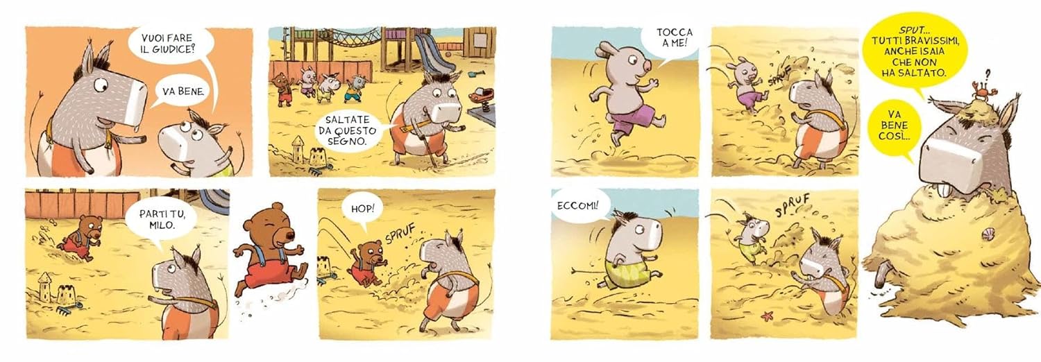 Arrivano in spiaggia alle 7 e il lido è tutto per loro. All’inizio per Gaetano la giornata sembra proprio come se la immaginava: sole, spiaggia e tanto relax ma subito gli amici di Zolletta lo chiamano per giocare. E allora via col surf, i castelli di sabbia e il ritrovamento di un enorme tesoro che stupirà moltissimo i bambini.